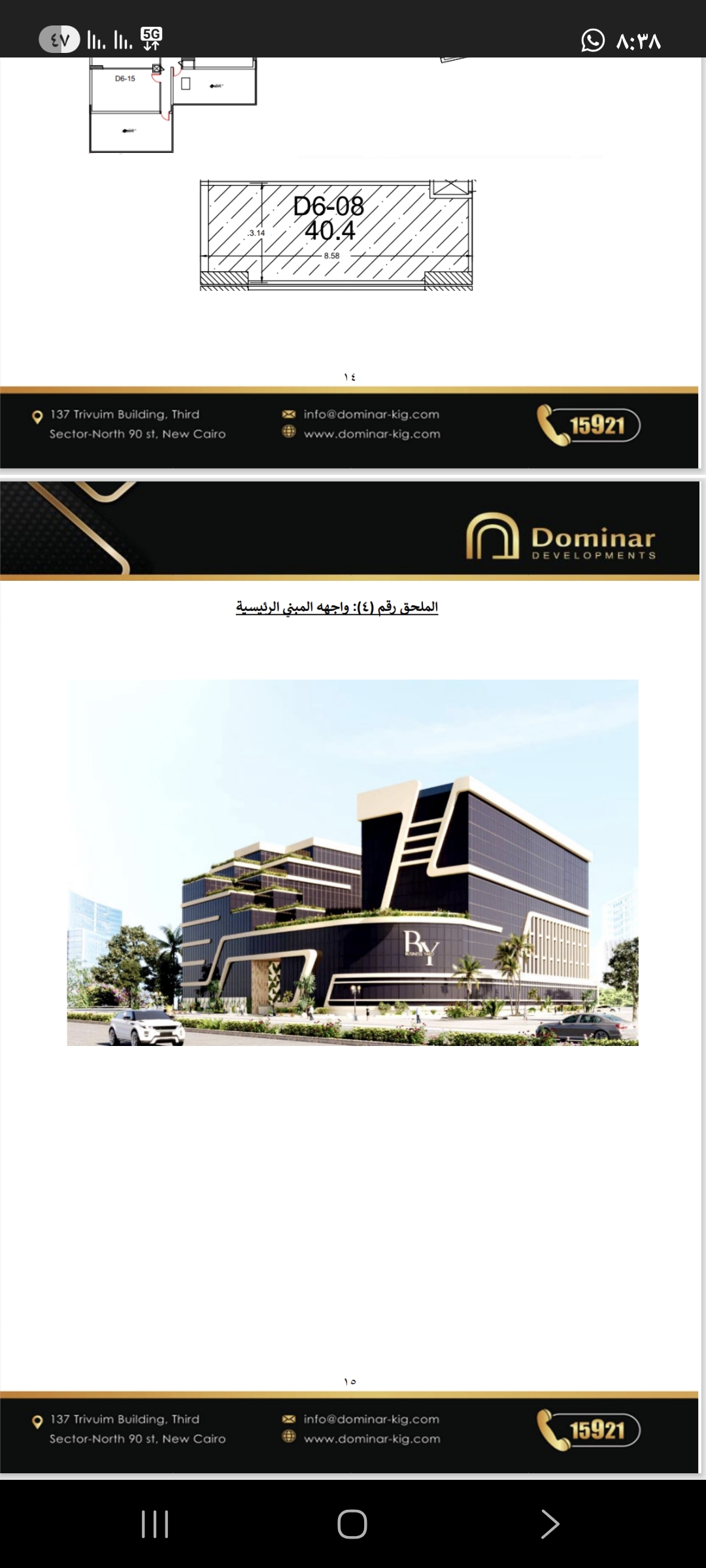 عيادة كاملة التشطيب بنيوم ميديكال هب، أحد أفخم المولات الطبية في القاهرة الجديدة، وبموقع استراتيجي على محور السادات الرئيسى بالتجمع الأول بمواجهة بوابة 10 لأكاديمية الشرطة، وهو محور رئيسى يربط القاهرة الجديدة بمدينة نصر. فرصة استثمار طبي متميزة بمول نيوم ميديكال هاب Neom Medical Hub - واحد من أعلى المولات الطبية فى نسبة الإشغال ويعمل منذ عام 2017. - التنازل لك من مالك العيادة الأول مباشرة بعقد من الشركة المالكة للمول. - جراج سيارات مغطى واسع ومجانى للزوار - تكييف مركزي – استقبال فاخر للزوار – أمن - أسانسيرات على أعلى مستوى - كافيتيريا - مصلى للسيدات وآخر للرجال - المنطقة حيوية تجمع ما بين فخامة التجمع الأول وقربها من الكثافة السكانية لمدينة نصر وأنها على مسافة خطوات من الطريق الدائري ومجمع المدارس وكمبوند النخيل. - العيادة جاهزة للاستلام والعمل فورًا. - أبواب وأرضيات وتشطيبات راقية. - العيادة فى الدور الأول مباشرة فوق الاستقبال والباركينج وبجوار الأسانسيرات والسلم وأماكن الانتظار الزوار (موقع متميز) - العيادة بها حوض وحنفية مياه خاص بها ووصلات كهرباء كثيرة فى كل مكان تناسب جميع التخصصات ومكان لوصلات سابقة لعيادة أسنان. - دورات المياه وأماكن انتظار الزائرين ضمن خدمات المول العامة لجميع العيادات وعلى أعلى مستوى. - امكانية توفير خدمات سكرتارية خاصة واعلانات عن العيادة فى جراج المول بإتفاق خاص مع ادارة المول. - المساحة: 24 متر² مكان العياده هو المشار اليه بالسهم الازرق ومكتوب جنبه رقم العياده في العقد وهو FA01A هناك خدمه سكرتاريه مجانيه محدوده، مثل توجيه المرضى الى العيادة مثلا وبعض الخدمات المحدوده. أما لو عايز سكرتارية خاصة مع عيادتك فقط في فترات عمل العيادة فهذا يتم توفيره بمقابل مادي إضافي. كذلك وضع الاعلانات في جراج المول ممكن بمقابل مادي اضافي كما يظهر بالرسم العياده هي الاولى بجوار السلم ومنطقه الانتظار والاسانسيرات. الاسانسيرات هناك فاخره للغايه. المول ٣ أدوار. أرضى وأول وثانى. الدور الأرضى به الجراج والاستقبال والكافيتيريا ومصلى الرجال والنساء ونافورة وحديقة. والأدوار الأول والثانى للعيادات. نسبة الاشغال ٩٥٪ 01095230703 - 01029495455